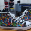 Zapatilla de Lona, negra con caña, estampada por la cara externa de cada zapatilla, tipo de estampado, impresion directa sobre la lona. Zapatillas Personalizadas